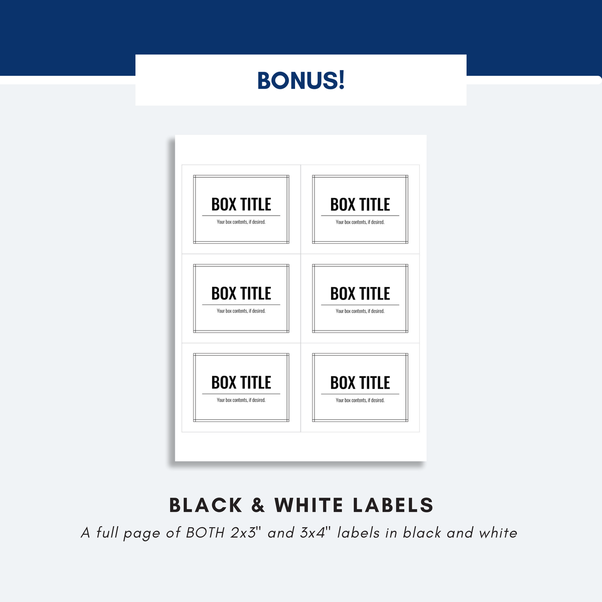 - 3x4" Labels - 7 pages of fillable labels, 6 labels/page
