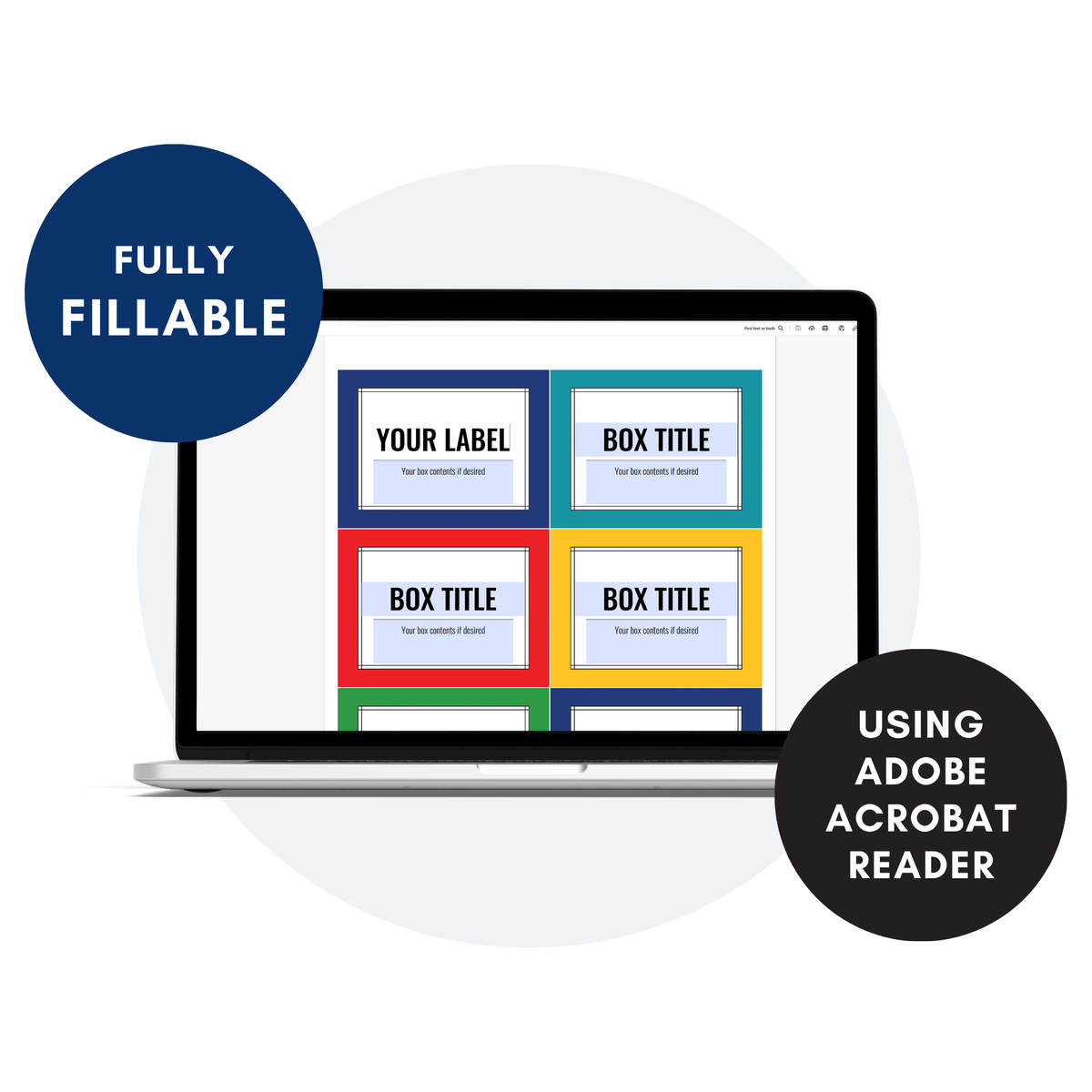 Each page features fillable text fields, so you can easily type in your own label information using the FREE version of Adobe Acrobat Reader.